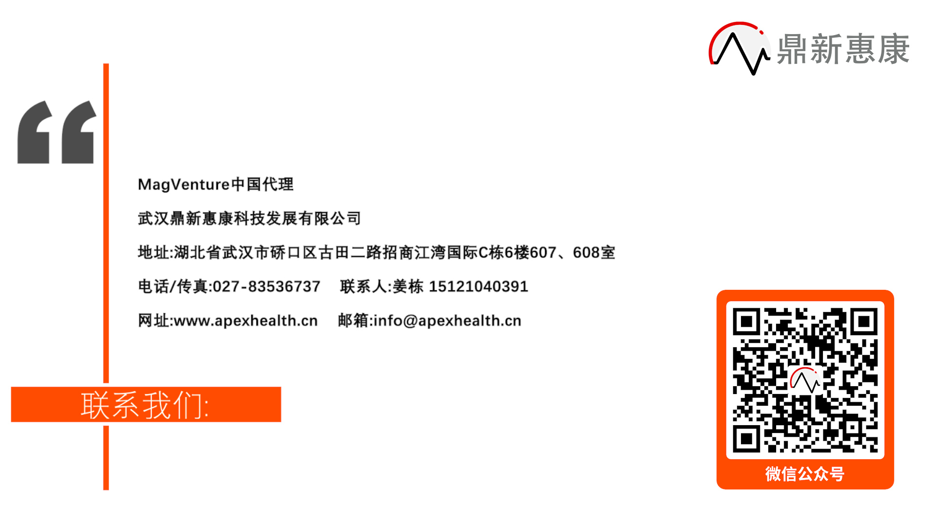 武汉鼎新惠康科技发展有限公司成立于2019年,是一群有着共同理想,致力于推广临床神经电生理技术和脑科学研究的专业技术人员创立的民营企业。公司总部位于湖北省武汉市硚口区高投创慧大健康产业园,该园区是以中国技术交易所医疗技术交易中心为核心,搭建大健康及医疗技术产业办公、研发、交易、金融、应用等产业形态为主的大健康产业综合体。公司借助产业园区的助力和员工的辛勤努力,得到了快速发展。